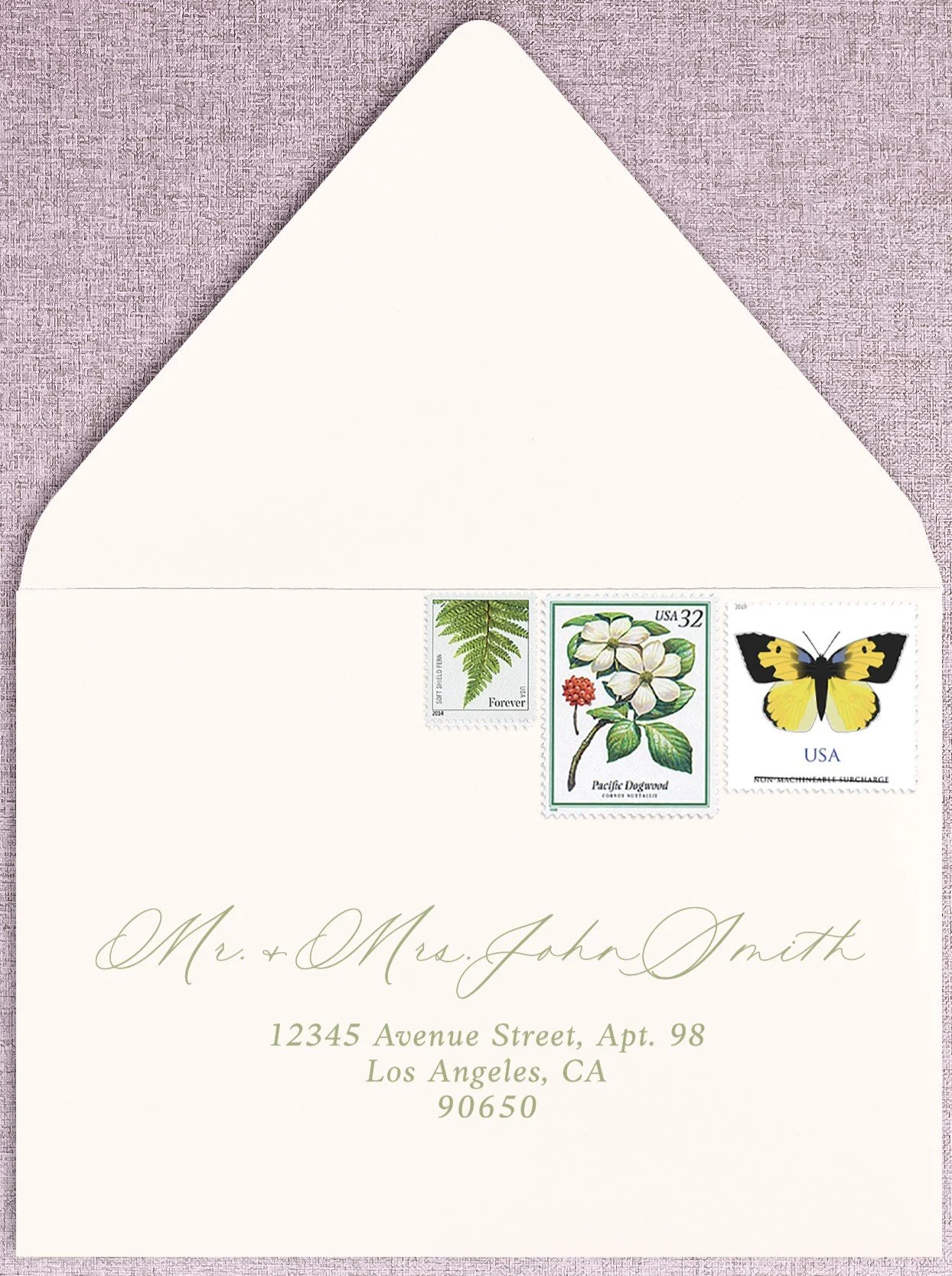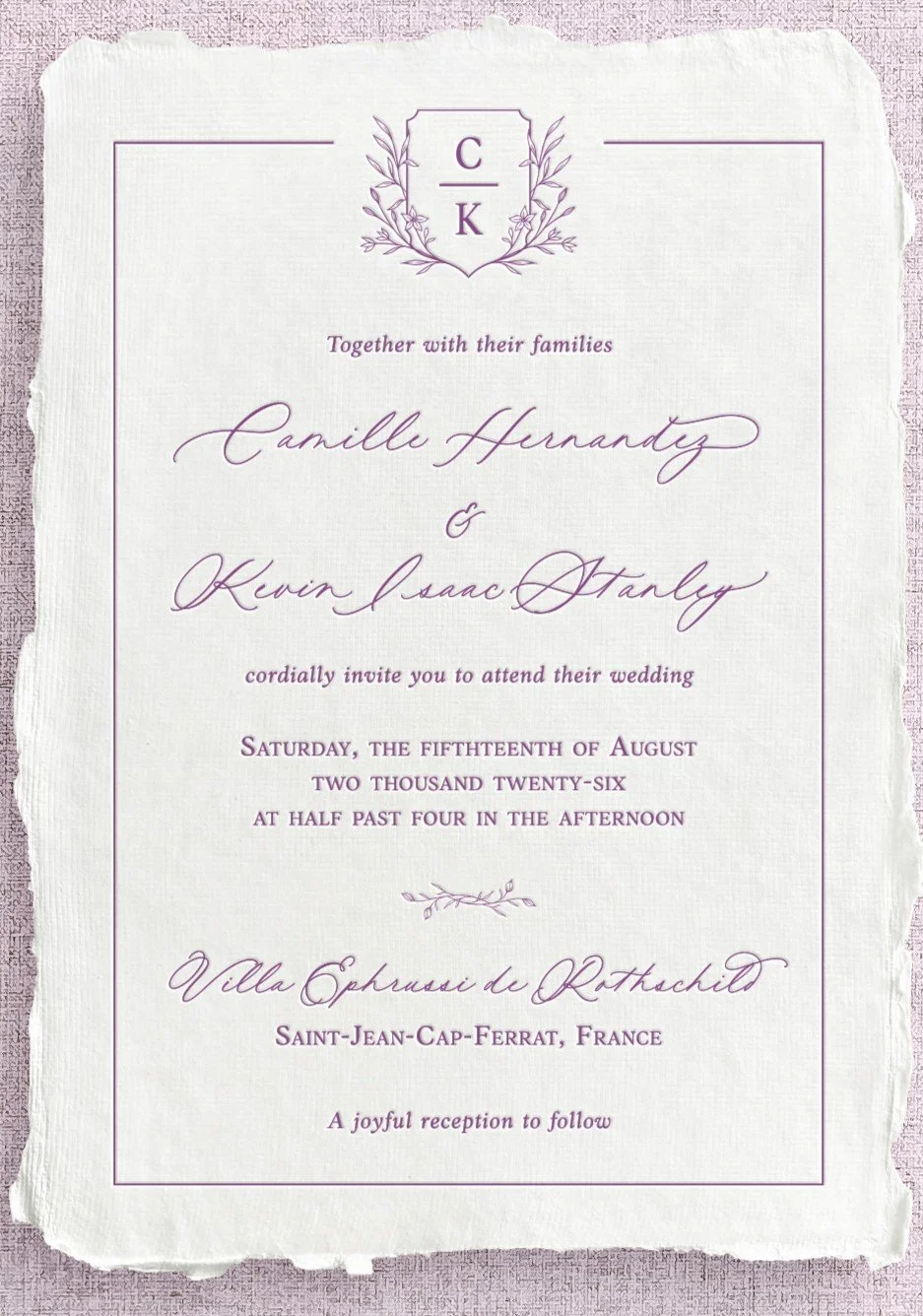 The Anna Suite is for the timeless romantic: featuring a refined crest, delicate greenery, and flowing script paired with classic serif fonts. Its soft composition and airy details create an effortlessly elegant look that feels personal, warm, and graceful.